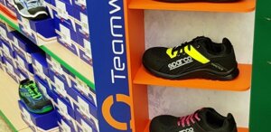 Dalla pluriennale esperienza Sparco nella ricerca della massima protezione del piede dei piloti professionisti, nasce la nuova linea Sparco Teamwork, una collezione di calzature di sicurezza dallo stile Racing, ispirato alle calzature da guida indossate dai migliori piloti professionisti del mondo. Calzature di assoluta qualità, leggere, comode e realizzate nel pieno rispetto delle normative vigenti sui dispositivi di protezione individuale.